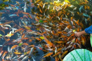 お客様に新たな体験を提供するために、「魚の水飲みボトルゲーム」が誕生しました。哺乳瓶を使って魚に餌をあげることができ、1回わずか20,000ドンです!大きな池の水面から何百匹もの鯉が飛び出し、餌の哺乳瓶の乳首を吸おうと競い合う様子は、誰もが興奮することでしょう。