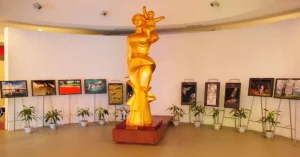このフロアでまず目に飛び込んでくるのは、「母なるベトナム」と名付けられた、肩に子供を乗せたベトナム女性の金色の像でしょう。この像はベトナム女性の母性愛を表現しており、正面入口に厳かに置かれています。上から見下ろすと、自然光を最大限活用するためにドーム型に建てられた博物館の建築の一部を見ることができます。